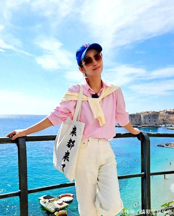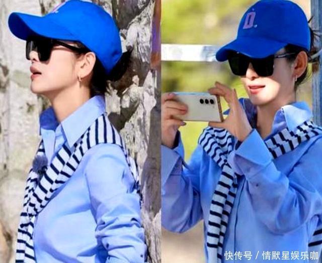 耳朵上的小圆环耳饰,虽然不起眼,但整个造型因为这种细节显得更精致。整体色调是蓝、黑、白、灰,干净利落,适合出门散步,或者去公园、咖啡馆这种休闲场合。说实话,很多人一到夏天就容易穿得乱七八糟,要么花哨,要么单调,其实像秦海璐这种“衬衫+一件小披肩”的思路,非常适合各种身材的女生,特别是年纪渐长以后,穿得太紧太单薄反而容易暴露短板。