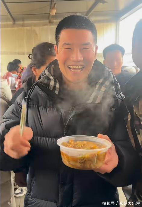 河北易县的农村大集上,人声鼎沸,锅气蒸腾。一口大铁锅炖着猪肉粉条,白馒头堆成小山,谢孟伟就站在人群里,捧着碗吃得满嘴油光。那件奢侈品牌的羽绒服皱巴巴地裹在身上,拉链都没拉好,袖口还沾着点汤渍——哪还有半点明星样儿?倒像是隔壁村刚干完活回来的老哥。